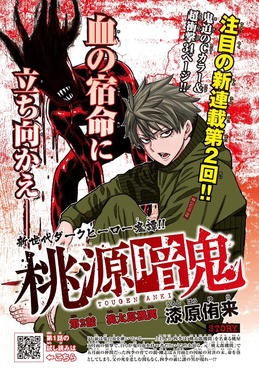 After explaining to Shiki that the Momotarou Corporation was established to exterminate Oni, and that the Oni Corporation was established to protect them in response, Mudano tells him that newly awakened Oni are gathered and tested to see if they are capable of controlling their abilities and training to become members themselves.
